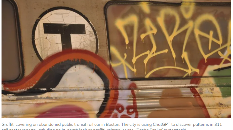 An interview with Boston CIO Santiago Garces, who often leads the country in creative government technology applications, highlighted for us the truly expansive power of AI in the hands of more-technical staff. Garces took us through his staff’s use of ChatGPT to discover patterns in 311 call center reports, including an in-depth look at graffiti-related issues. Garces essentially is looking to force-multiply his team’s capacity by outsourcing to a tool some of the coding and freeing up more time for analysis.